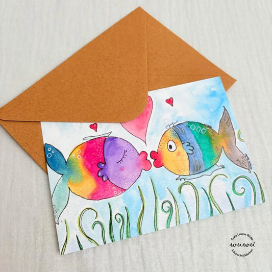 Fischbussi - Grußkarte mit Kuvert von Wuwu